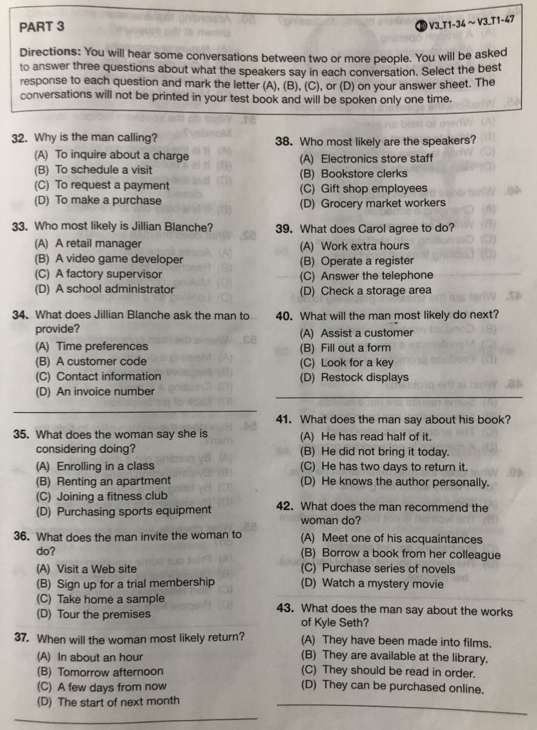 ここで、PART3が始まってから、Q.37までの音声は以下ように流れてきます。